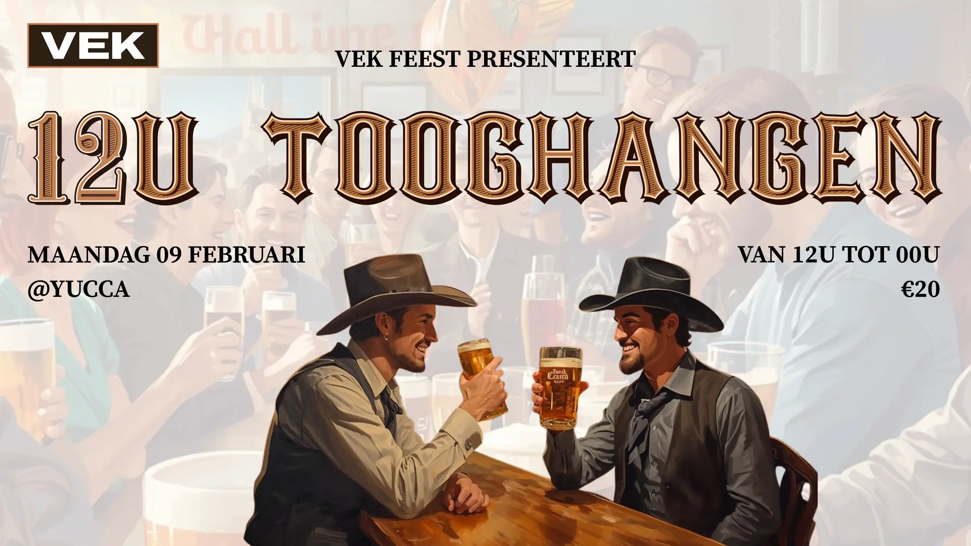 De grootste uitdaging van het jaar staat weer voor de deur: 12u Tooghangen! Op maandag 9 februari in de Yucca gaan we van 12 uur ’s middags tot middernacht samen het nieuwe jaar inzetten, en geloof ons: dit wil je niet missen. 🍻