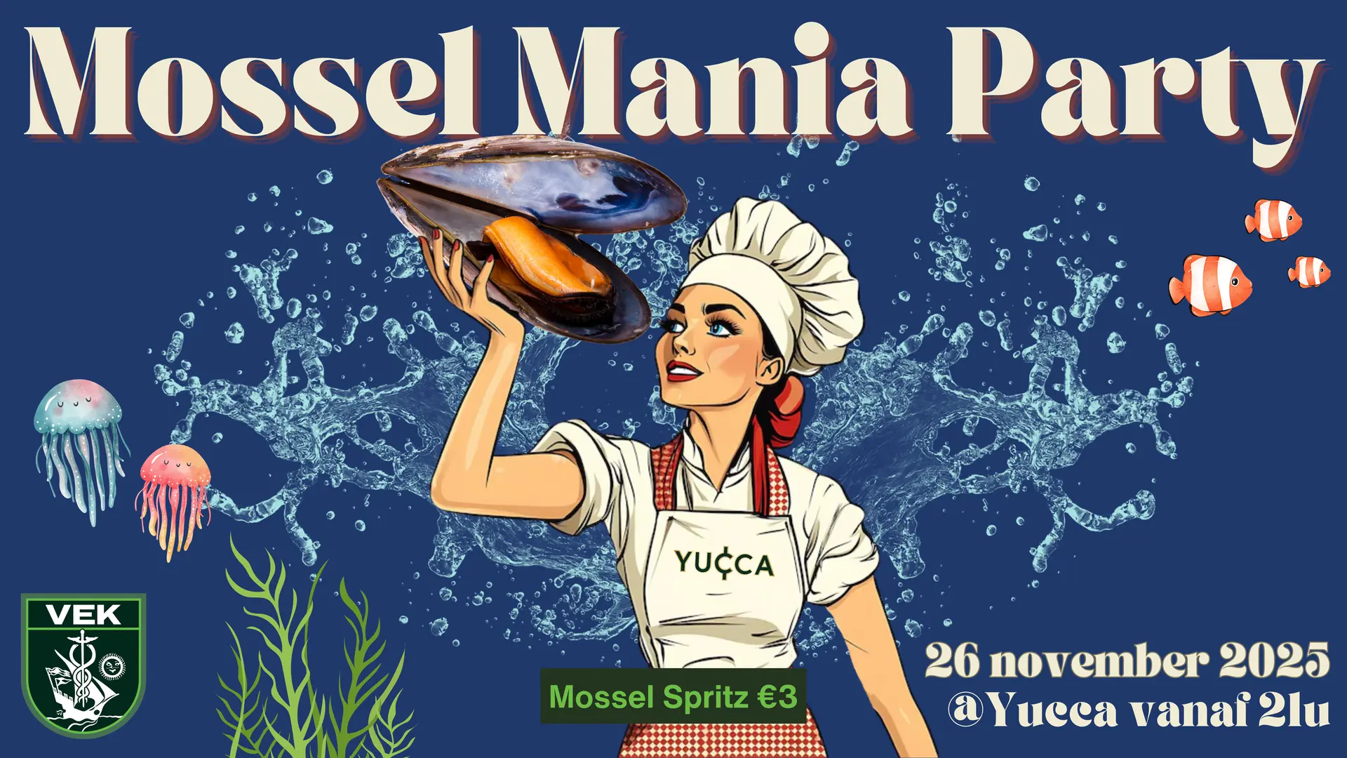 Het is alweer week 10, maar wij blijven nog steeds de gepaste ontspanning voorzien. Deze week staat er opnieuw een knaller van een feestje op de planning: de Mossel Mania Party! We toveren de Yucca om tot een prachtige onderwaterwereld waarbij dé mossel centraal staat!